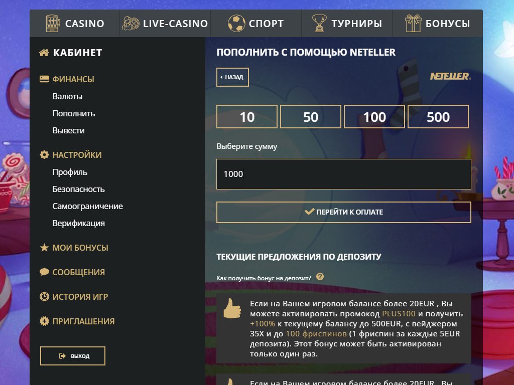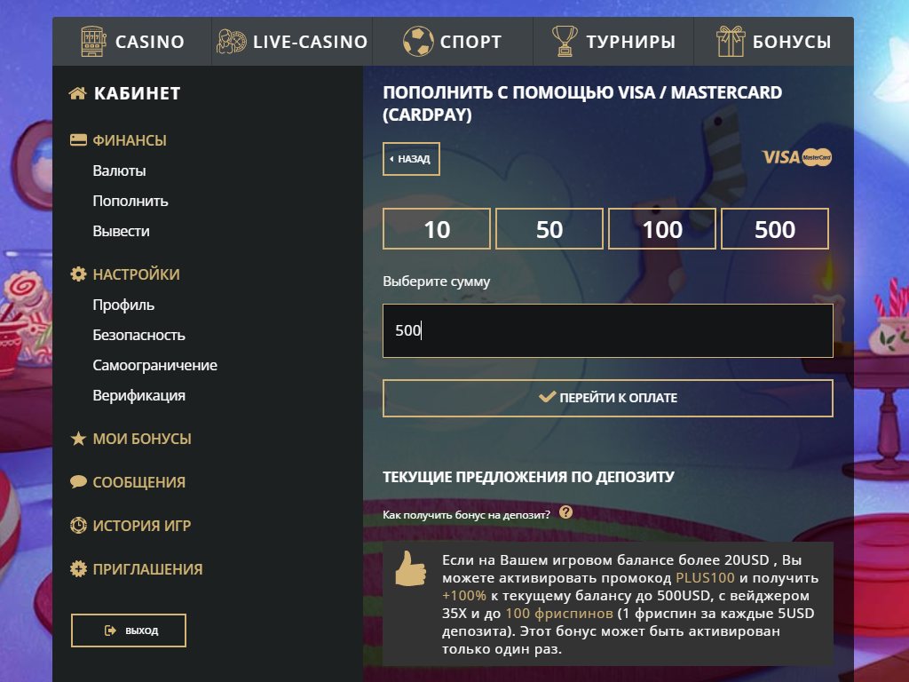 - Если игрок хочет забрать более 10 000 рублей, то его личные данные должны быть подтверждены администрацией. Чтобы казино рассмотрело информацию о клиенте, он должен запросить процедуру верификации. Спустя 1-2 дня данные будут либо одобрены, либо нет и тогда игроку сообщат, что не так с его профилем;