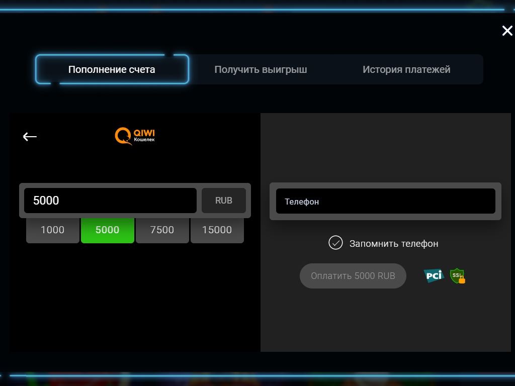 - Вывод более 5000 рублей и джекпотов с сайта возможен только в случае верификации клиента. Для этого необходимо указать рабочий номер телефона;