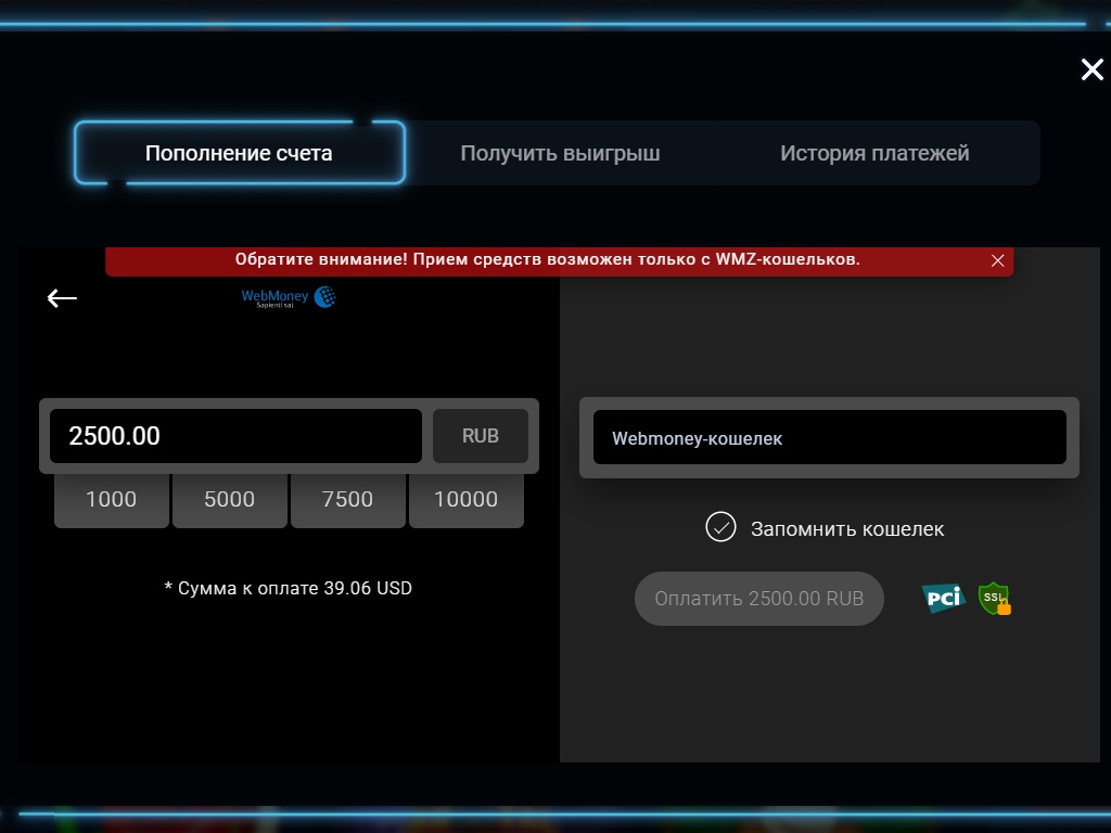 - Осуществить снятие средств можно только на те реквизиты, с которых игрок делал депозит;